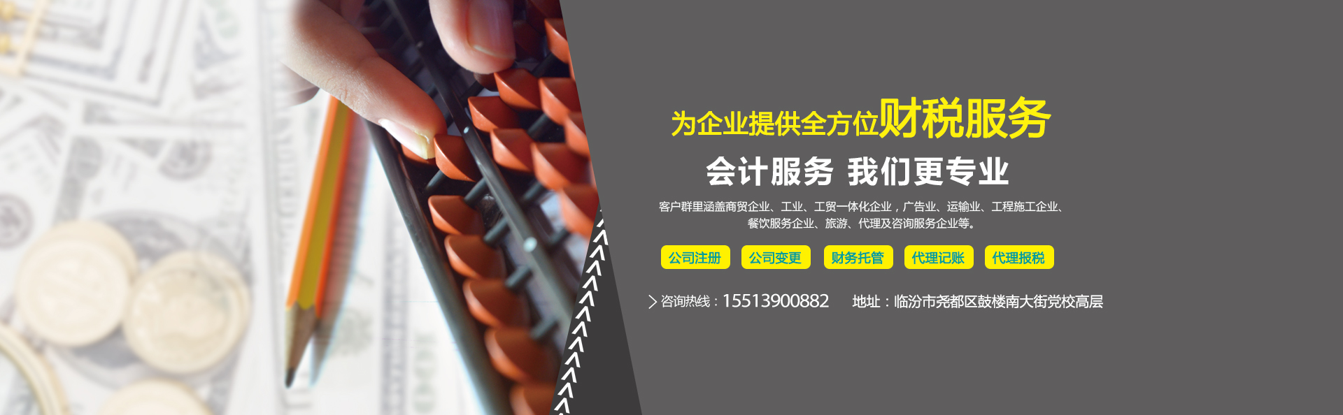 以專業的業務水平和豐富經驗,為企業進行公司注冊、公司變更、公司注銷、代理記賬、代理報稅、財務托管、財務咨詢、商標注冊、驗資審計等服務。